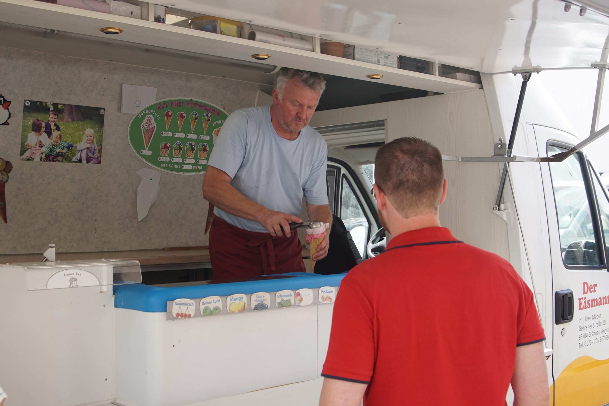 Da sich die Sonne an dem Tag an unser Motto „Sommer, Sonne, solvimus“ hielt, haben wir für verschiedene Abkühlungen gesorgt. Das wohl größte Erfrischungshighlight war der Eismann Ilmenau (Eis Wagner) mit seinem Eiswagen.
