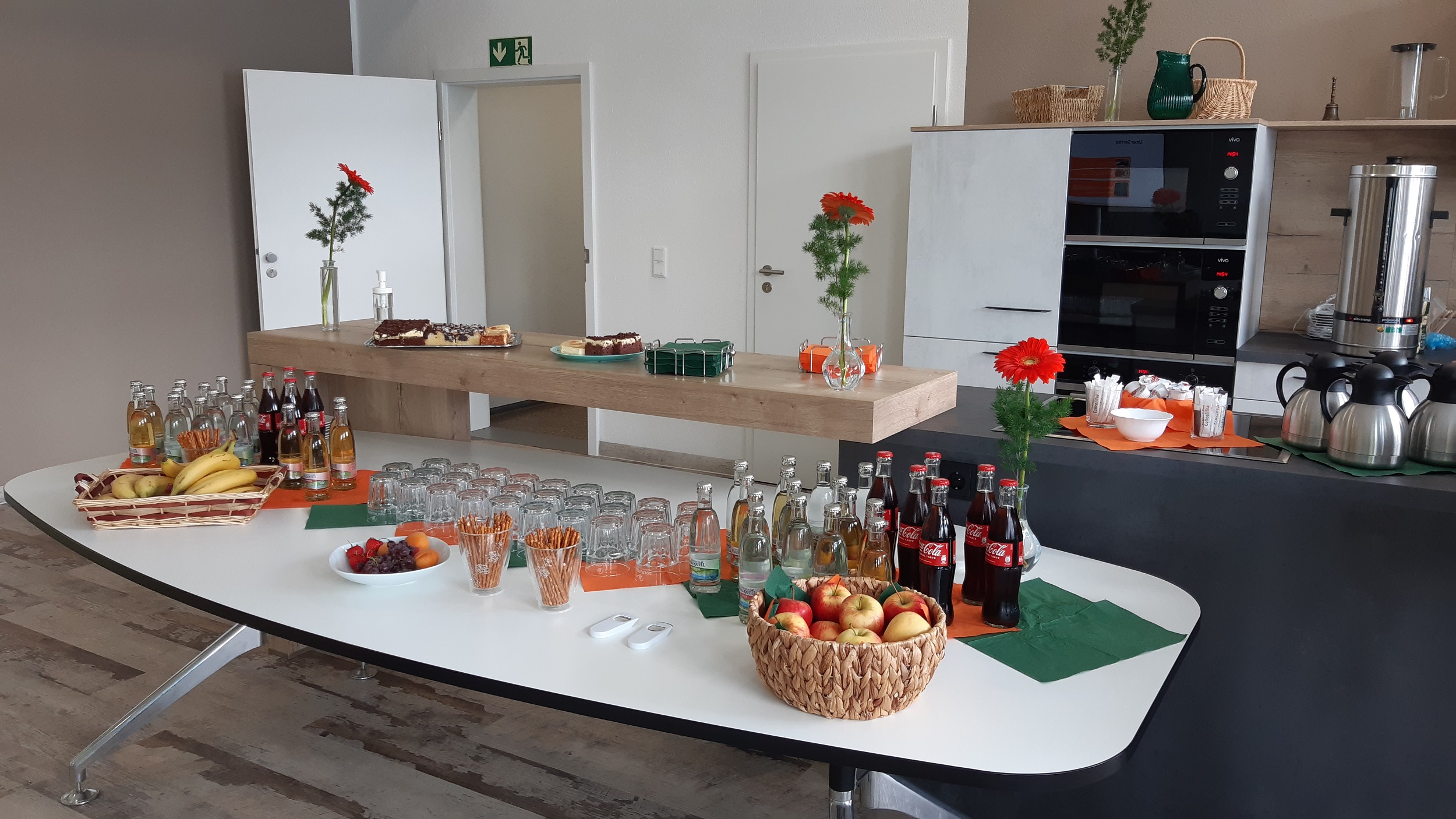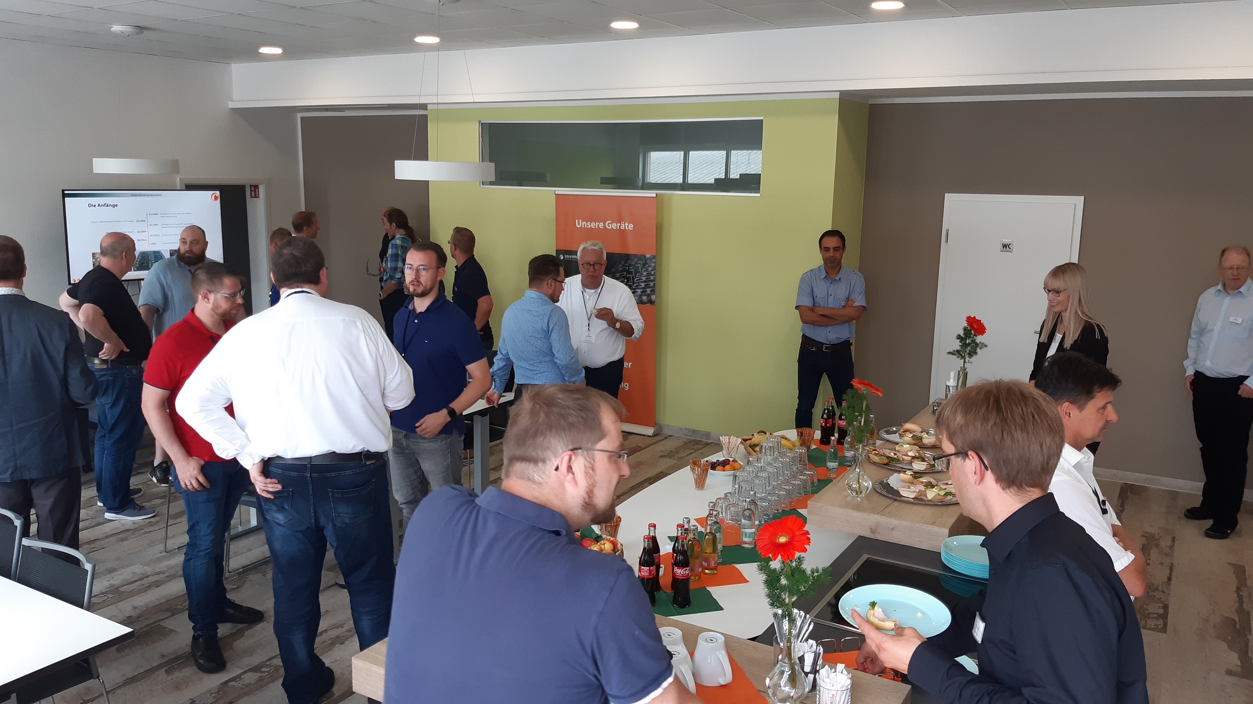 The event faded out on our large, comfortable outside terrace with a buffet with Thuringian grilled specialities from the butcher Zitzmann (Erfurt), cool drinks and our “Signature Drink” in glasses branded solvimus-style orange.