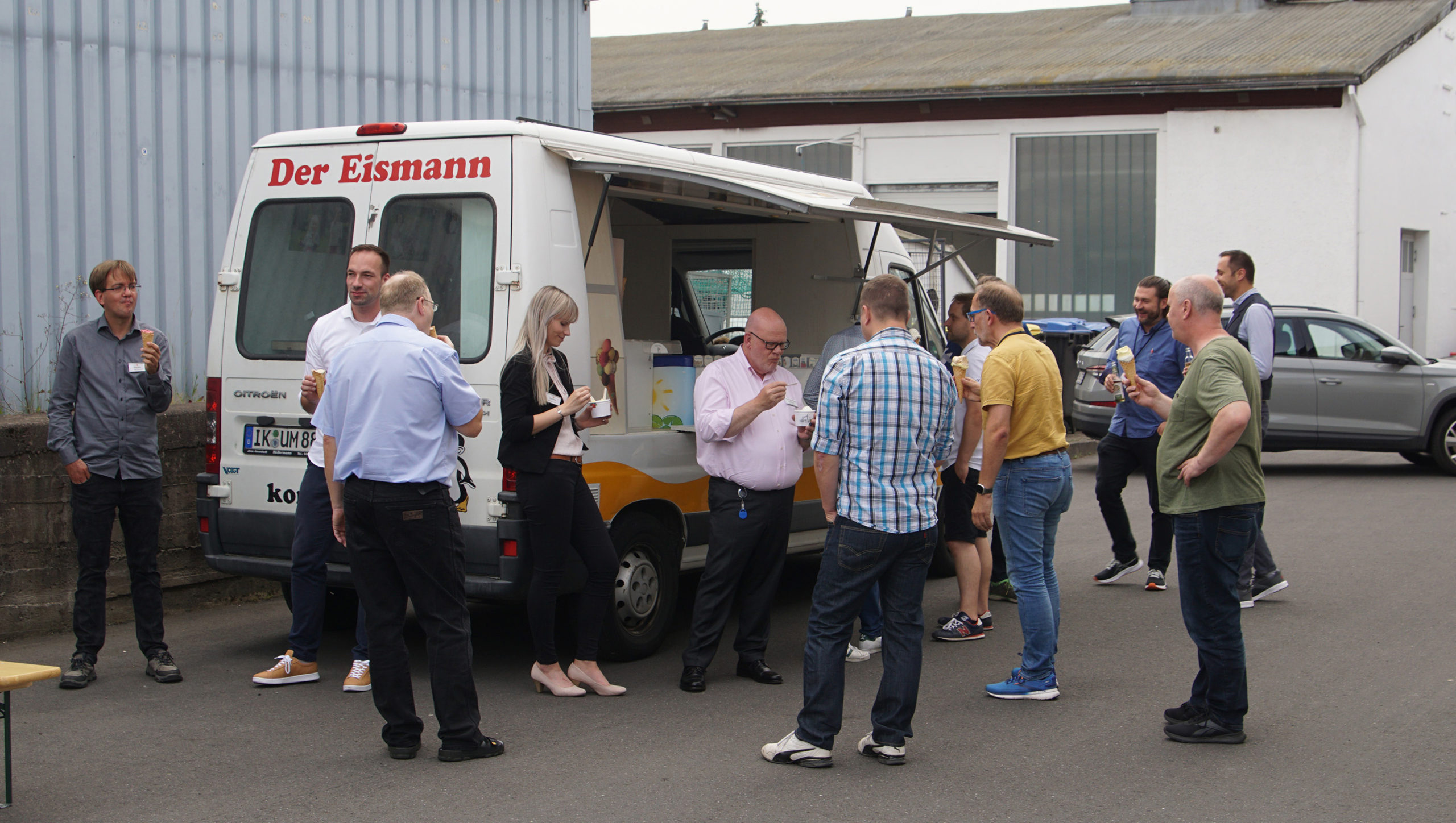 With the summerlike temperatures, everyone was glad to get a refreshment from the ice cream man at coffee break time.